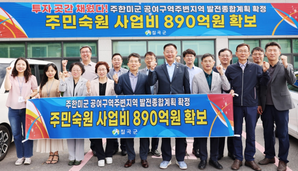 칠곡군은 지난 7월 행정안전부의 ‘주한미군 공여구역 주변지역 발전종합계획’ 신규 수요조사 계획에 따라 4개 사업, 890억 원을 신청했고 지난 9월 초 발전종합계획에 반영됐다.