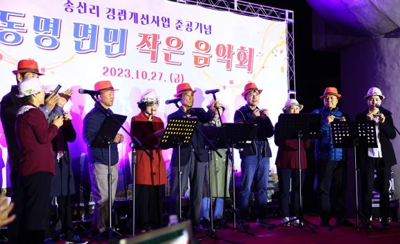 칠곡군 동명면이 지난 27일 송산리 중앙고속도 하부 일원에 조성된 무대에서 ‘동명 면민 작은음악회’를 개최했다.