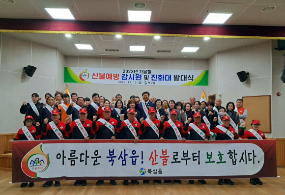 칠곡군 북삼읍이 지난 10일 평생학습복지센터에서 산불감시원, 명예감시원 등 60여명이 참석한 가운데 가을철 산불예방 발대식을 개최했다.