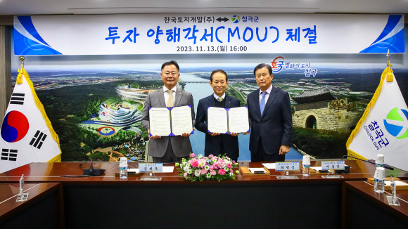 | 칠곡군이 지난 13일, 한국토지개발 주식회사와 양해각서를 체결했다.