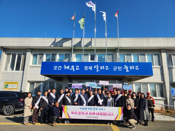 | 칠곡군이 저출생 및 고령화, 인접 대도시로의 인구 유출 등으로 인구 11만 명 붕괴에 직면한 심각성을 알리고 인구감소세를 전환하기 위해 지난 20일 기산면, 21일 약목면에서 칠곡愛 주소갖기 캠페인을 실시했다.