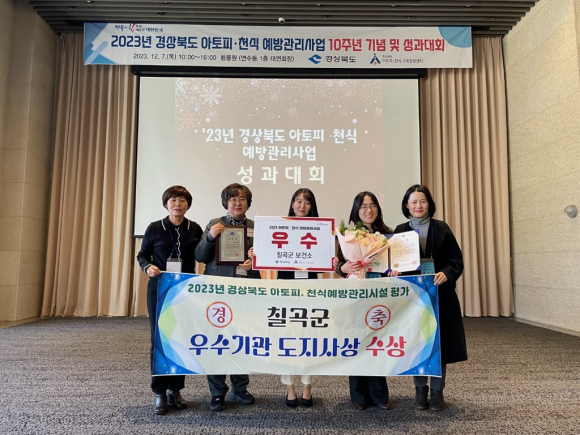 | 칠곡보건소가 지난 7일 경주 황룡원에서 열린 ‘2023년 아토피·천식 예방관리사업 성과대회’에서 기관 우수상을 수상했다.