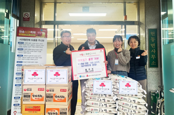 청송 현동면 홈마트에서 연말을 맞아 지난 14일 지역의 취약계층을 위해 쌀 10kg 20포, 라면 20박스(150만원 상당)를 기부했다.