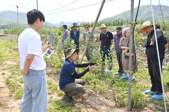 | 청송군이 고품질 생산을 위한 선도농업인 맞춤형 현장특화교육을 통해 중·소농 소득격차 해소를 목적으로 2024년 경북농민사관학교 첨단기술 현장특화교육과정(사과)을 개설한다.
