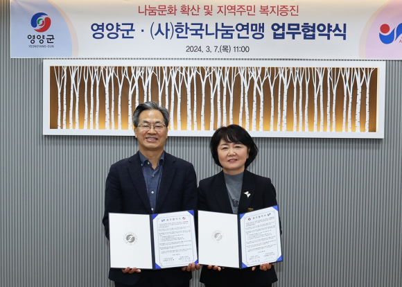 | 영양군이 7일 오도창 군수, 박화자 (사)한국나눔연맹 사무처장이 참석해 상호협력과 교류를 통한 나눔문화 확산 및 지역민의 복지증진을 위한 업무협약을 체결했다.