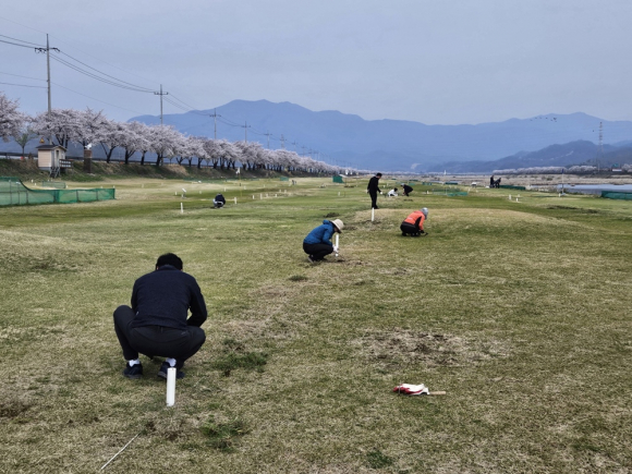 문경새재배 전국파크골프대회 앞두고 막바지 준비를하고있.<문경시 제공>