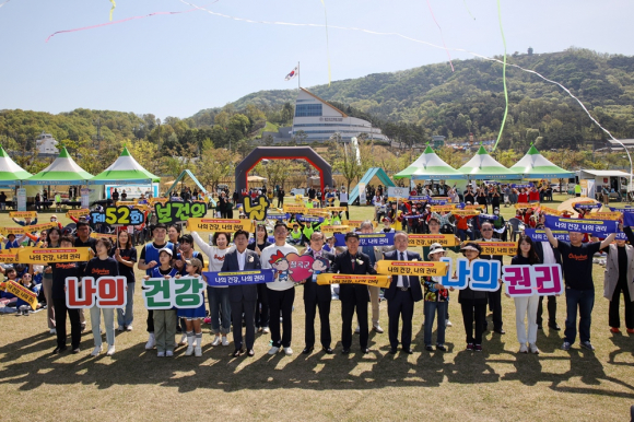 | 칠곡군이 지난 14일 칠곡보생태공원에서 군민 보건의식을 향상시키고 보건의료 분야 종사자를 격려하기 위해 제52회 보건의 날 기념식과 가족과 함께 참여하고 즐길 수 있는 세대통합, 건강합심, 건강올림PICK 행사를 진행했다. 이번 행사는 칠곡 치매안심센터와 치매보듬마을이 함께하는 실종예방 뮤지컬과 상황극 식전공연을 시작으로 1부 기념식에서는 군민 건강증진에 기여한 유공자에 대한 표창수여와 기념사, 보건의 날 주제 슬로건 포퍼먼스 순으로 이루어졌다. 2부 순서에는 세대 간의 소통과 협력을 도모하기 위해 다양한 세대가 함께 참여하는 명랑운동회 등 신체활동 건강체험 프로그램과 함께 보건소 건강증진사업 전반에 대한 체험 홍보부스를 운영하여 850여명의 참가자에게 즐거움과 함께 다양한 정보를 제공했다