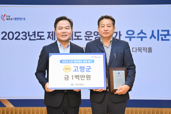고령군이 지난 5일 경북도청에서 열린 2023년도 시·군 제안제도 운영 평가 시상식에서 장려상을 수상함으로써 ‘3년 연속’ 우수기관으로 선정됐다.