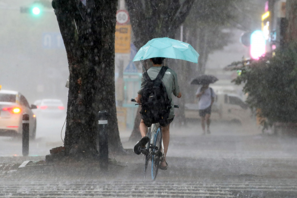 | ↑↑ 5일 오후 대구 수성 신매시장 일대에 갑작스러운 폭우가 쏟아지고 있다.<뉴스1> |