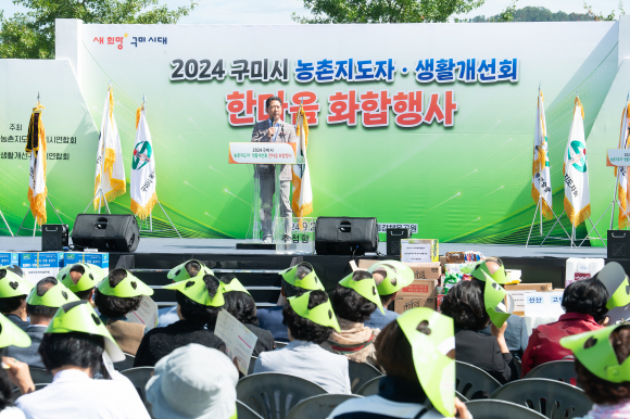 | 구미시가 지난 24일 낙동강체육공원에서 농업인 학습단체인 농촌지도자와 생활개선회 회원 600여 명이 참여한 가운데 한마음 화합행사를 개최했다.