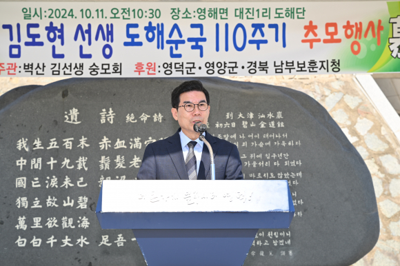 | 영덕군이 일제에 저항하다 순국하신 벽산 김도현 선생의 110주기 추모행사를 지난 11일 오전 10시 30분 영해면 대진리 도해단에서 개최했다.