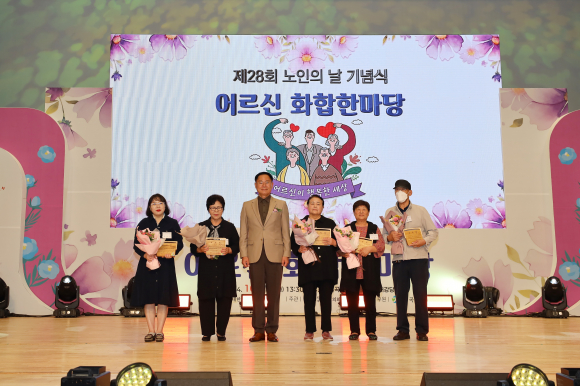 이번 행사는 대한노인회 칠곡지회(회장 임의도)가 주최하고 청년협의회 칠곡연합회(회장 김석진)가 주관했으며, 주요 내빈과 지역 어르신 등 약 680여 명이 참석한 가운데 식전공연, 기념식, 축하공연 순으로 진행됐다.