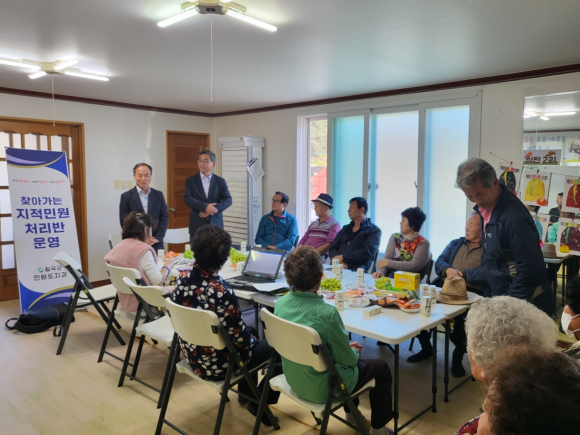 찾아가는 지적현장 민원상담실은 민원토지과 공무원과 한국국토정보공사 직원으로 구성된 합동처리반을 편성해 토지이동 및 지적측량 등 토지 관련 민원 전반과 생활민원에 대해 현장에서 직접 상담해주는 제도다.