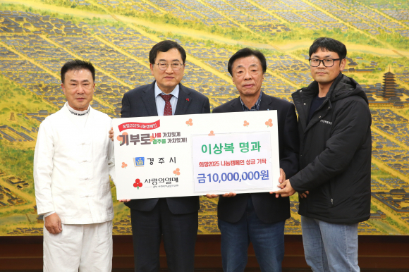 이상복 명과가 지난 5일 경주시청을 방문해 희망2025 나눔캠페인 성금 1000만 원을 기탁했다.