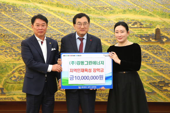경주장학회 이사장인 주낙영 시장은 “어려운 여건 속에서도 꿈을 키워가는 학생에게 이번 장학금이 큰 힘이 될 것”이라며, “지역 인재 육성을 위해 따뜻한 마음을 전해 준 강동그린에너지에 감사드린다”고 전했다.
