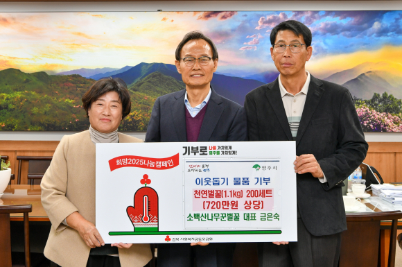소백산나무꾼벌꿀이 지난 6일, 영주시청을 방문해 지역 내 어려운 이웃에게 전해달라며 천연벌꿀(1.1kg) 200세트(720만원 상당)를 기부했다.