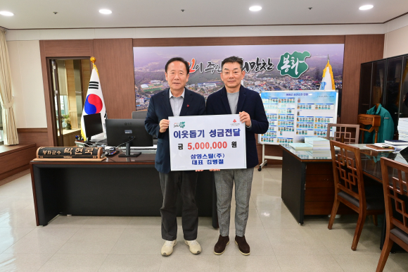 삼영스틸(주)이 지난 5일 봉화군청을 방문해 사랑의 열매 이웃돕기 성금 500만 원을 전달했다.