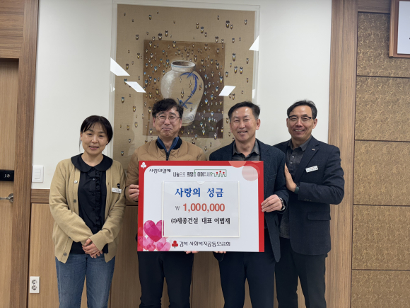 ㈜세종건설에서 지난 14일 대가야읍사무소를 방문해 사랑의 성금 100만 원과 교육발전을 위한 기금 100만 원을 기탁했다.