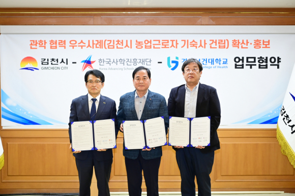 협약은 김천시가 농업 근로자 기숙사 건립 공사 추진 과정에서 교육부 산하 한국사학진흥재단의 우수한 관학 협력 사례로 선정됨에 따라, 타 지자체 확산모델로 홍보하기 위해 각 기관 협의를 거쳐 추진됐다.