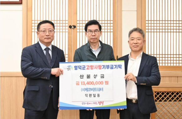에코비트워터는 영덕군 산불 피해 복구를 위한 성금 2,000만 원과 함께 임직원의 자발적인 참여로 고향사랑 산불 지정 기부금 1,340만 원을 마련했다.