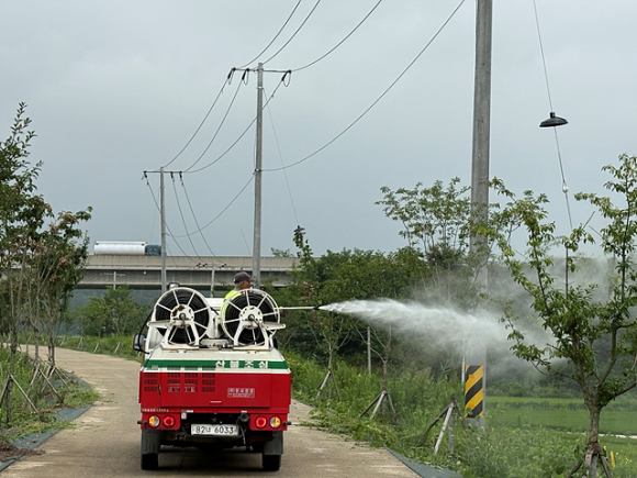 이에 따라 군은 나무의사 수목 진단 결과를 토대로 방제 차량 2대와 도시녹지관리원 6명, 산림병해충예찰방제단 7명을 투입해 이달 4일부터 방제 작업을 진행하고 있다. 앞으로도 해충 발생과 수목 상태 등에 대한 지속적인 점검과 함께 일주일 이상 격차를 두고 9월 말까지 기상 상황과 병해충 발생 예측 정보를 반영해 2차, 3차 방제를 이어갈 계획이다.