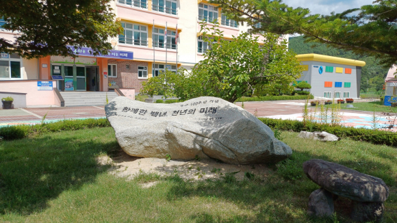 | 재산초 기념석.<봉화군 제공> | 봉화 재산초(총동창회장 양재현, 45회 졸업생/교장 박일)가 개교 100주년을 맞아 기념사업추진위원회를 출범하고 본격 준비에 돌입했다. 기념사업추진위원회는 52회 졸업생인 장진한 씨를 위원장으로 선임하고, 기획홍보팀·재무팀·운영위원 등 30여 명으로 구성했다. 이들은 ‘함께한 100년, 천년의 미래’라는 슬로건 아래 오는 9월 20일 열릴 기념식을 위한 다양한 준비를 진행 중이다. 재산초 운동장에 조성될 기념공원과 기념비 제막식을 위해 지역 내 기념비석을 확보했으며, 기획홍보팀은 학교의 100년 역사를 담은 기념 홍보물 제작과 은사와 함께하는 행사, 당일 축하행사 등을 준비하고 있다. 재무팀은 행사 참석자에게 전달할 기념품과 당일 전체 일정에 따른 소요 경비 확보에 만전을 기하고 있다. 특히 54회 졸업생인 임 모씨는 행사 당일, 인재 육성을 위한 장학금을 재학생 전원에게 전달하겠다는 뜻을 밝혔다. 1925년 8월 일제강점기 때 4년제 보통학교로 설립 인가를 받은 재산초는 같은 해 9월 15일 개교했으며, 1926년 4월에는 6년제로 전환됐다. 현재까지 99회에 걸쳐 5,711명 졸업생을 배출했다. 1981년 3월에는 병설유치원을 개원해 인재 양성의 초석을 다졌으며, 1986년에는 특수학급을 신설했다. 이어 1992년 3월에는 인구 감소로 인해 남면 분교를 본교로 통합했고, 1998년 3월에는 동면초등학교와도 통합 운영하며 현재에 이르고 있다. 장진한 기념사업추진위원장은 “전형적인 농촌 지역 초등학교가 100년이라는 오랜 역사와 전통을 이어왔다는 사실에 큰 자부심을 느낀다.”며 “지방소멸과 인구 감소로 인해 폐교되는 학교들이 늘어나는 현실 속에서도 5,711명의 인재를 배출해온 재산초등학교야말로 지역의 명문”이라고 강조했다. 양재현 총동창회장은 “이번 100주년 기념행사는 우리 모교의 자랑스러운 역사를 되돌아보고, 새로운 1000년을 향한 중요한 전환점이 될 것”이라며 “기념사업추진위원회를 중심으로 모든 구성원, 동문, 지역사회가 함께 참여하고 공감할 수 있는 행사가 되도록 최선을 다하겠다.”라고 밝혔다. |