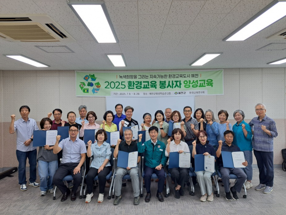 예천군이 지난 29일 청내 중회의실에서 환경문제에 관심있는 일반인을 대상으로 지역사회 환경리더로 양성하기 위한 환경교육 봉사자 양성과정 수료식을 개최 했다.