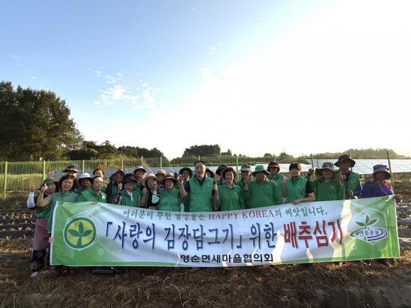 문경 영순 새마을회가 지난 30일 1,000㎡의 오룡리 휴경지를 활용해 '사랑의 배추·무 모종 심기' 행사했다.