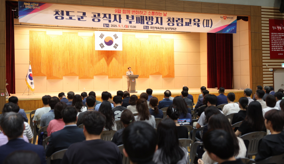 청도군이 지난 1일 국민체육센터에서 전 공직자가 한자리에 모인 가운데 ‘2025년 공직자 부패방지 청렴 교육’을 실시했다. 교육은 공직사회에 만연할 수 있는 크고 작은 부패를 예방하고, 청렴을 군정 운영의 최우선 가치로 확립하기 위해 마련됐다.