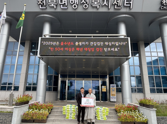 경주 천북면 대한불교조계종 원효사가 지난 4일 지역 주민을 위해 백미 10kg 40포를 기탁했다.