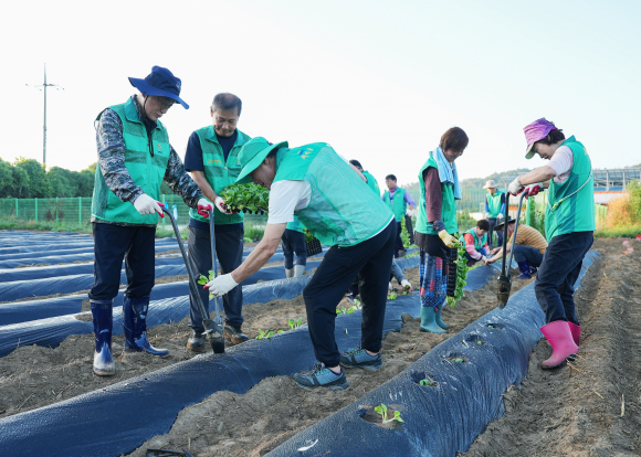 영천 새마을회가 지난 5일 금호읍 덕성리 새마을농장에서 이웃사랑 실천을 위한 김장배추 모종 심기 행사를 가졌다.