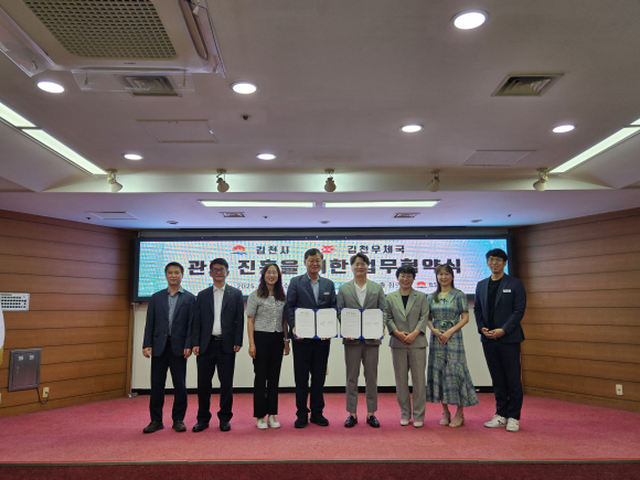 | 김천시와 김천우체국아 지난 10일 시청에서 지역 관광진흥을 위한 업무협약을 체결했다. 협약식에는 윤상영 경제관광국장, 김상호 김천우체국장을 비롯한 양 기관 관계자들이 참석해 관광진흥 상호 협력 방안을 함께 논의했다.
