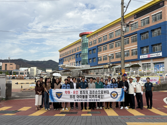 영덕 경찰서가,15일 야성초 앞에서, 교육지원청‧영덕초‧녹색어머니회‧경찰서 합동으로 '약취‧유인 범죄의 검은손으로부터 우리 아이들을 지켜주세요'캠페인을 실시했다.