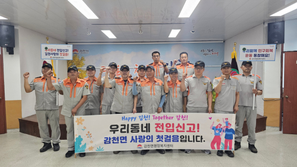김천 감천 의용소방대가 지난 12일 면 행정복지센터 회의실에서 ‘인구 회복 운동’릴레이 캠페인을 실시했다.