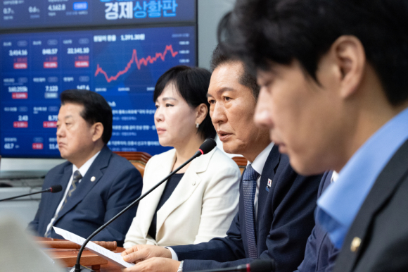 ↑↑ 정청래 더불어민주당 대표가 15일 서울 여의도 국회에서 열린 최고위원회의를 주재하고 있다.<뉴스1>