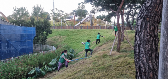 점촌5동 새마을남녀지도자협의회가 지난 11일 회원 20여 명이 참여한 가운데 모전공원과 모전어린이공원 일대 제초 작업을 했다.