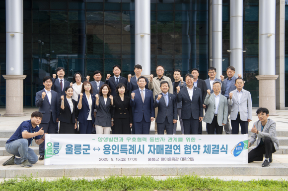 | 울릉군과 용인시가 지난 15일 오후 5시, 울릉군 한마음회관에서 두 지자체 간 자매결연 협약식을 개최했다.