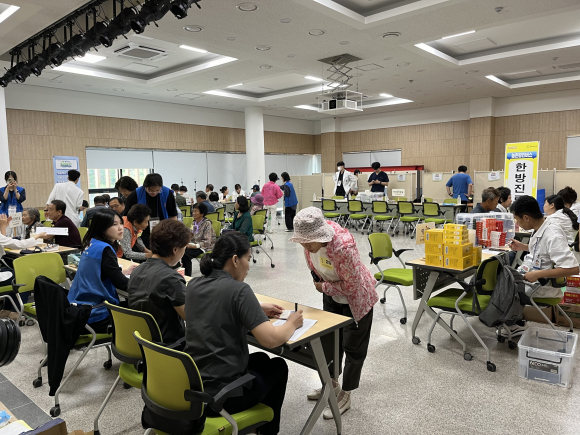 | 찾아가는 농촌왕진버스 운영 모습.<봉화군 제공> | 봉화군과 농협 중앙회가 지난 17일, 의료가 취약한 농촌 지역에 거주하는 주민을 대상으로 양·한방 진료, 물리치료, 안과검진, 질병관리 및 예방교육 등 맞춤형 의료서비스를 제공했다. 봉화군은 지난해 11월 농림축산식품부 ‘농촌왕진버스’공모사업에 선정되어 지역민들이 의료혜택을 받을 수 있게 됐다. 명호 행정복지센터에서 봉화 주민 300여 명이 참석한 행사에는 보건의료 통합봉사회와 연세대 스포츠재활연구소에서 의사, 한의사, 간호사 등 의료진 20명이 각종 질환 건강 상담과 진료 및 약처방을 무료로 시행했다. 또한, 홍제그랑프리안경원에서 정밀 시력검사를 하고 시력에 맞는 돋보기를 제공하는 등 지역 여건과 상황을 고려한 농촌 맞춤형 의료 서비스 활동을 펼쳤다. 이번 농촌왕진버스 의료서비스 제공은 도시에 비해 의료 인프라가 상대적으로 취약한 농촌지역의 의료 공백이 심화되는 가운데, 질병 예방·건강관리 수요와 맞물려 삶의 질을 높이는 데 도움이 돼, 주민 호응을 얻었다. 박현국 군수는 “평소 영농활동으로 건강을 돌보지 못한 지역 주민에게 양질의 의료서비스를 제공하게 돼 기쁘고, 이번 검진 및 진료를 통해 농업인 스스로가 몸과 마음도 건강하게 돌볼 수 있는 계기가 됐으면 좋겠다”고 말했다. |