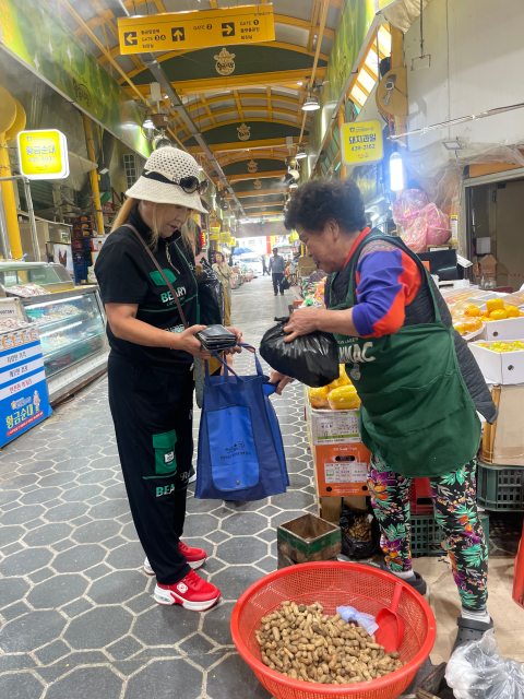 회원들은 미리 준비한 김천사랑상품권과 김천사랑카드를 활용해 명절 제수용품을 구매하고, 가격을 비교하면서 신중하면서도 알뜰한 모습을 보였다.