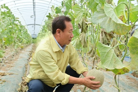 | 멜론 본격 출하 및 시범사업 평가회 모습.<봉화군 제공> | 봉화군이 지난 24일 재산면의 멜론 재배농가에서 ‘수박 후작 고품질 멜론재배 기반조성 시범사업 평가회’를 개최하고, 멜론 본격 출하 소식을 알렸다. 평가회에는 사업 참여 농업인과 관계자 등 30여 명이 참석해 수박 후작 멜론재배의 경제성 및 지역적용 가능성을 논의하고 현장 평가를 실시했다. 봉화군은 지난해부터 사업비 2억 7000만 원(도비[전환], 군비, 자부담 포함)을 투입해 봉화스마일멜론작목반(12농가, 3.9ha)을 중심으로 멜론재배 기반 조성사업을 추진해왔다. 주요 사업내용은 온도저감시설(유동팬) 설치, 포장박스 제작, 농자재 지원 등으로 준고랭지 기후를 활용한 고품질 멜론 생산체계를 마련하는 데 중점을 뒀다. 시험재배 결과 평균 2kg, 당도 15브릭스(Brix) 이상의 우수한 품질을 보였으며, 최고 18브릭스까지 기록하는 등 경쟁력을 확인했다. 또한 고온기에 유동팬을 활용한 온도저감 효과로 생리장해를 크게 줄일 수 있었고, 흰가루병과 바이러스 발생도 적기 방제를 통해 피해를 최소화했다. 신종길 농업기술센터소장은 “시범사업을 통해 수박 후작 멜론의 재배 안정성과 고품질 생산 가능성을 확인했다.”며 “앞으로 농가 소득 다변화와 봉화 멜론의 브랜드 가치를 높이는 데 적극 지원하겠다”고 밝혔다. |