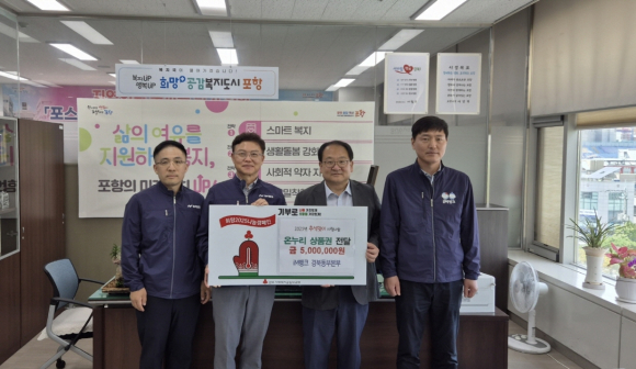 iM뱅크 경북동부본부가 지난 26일 포항 시청을 방문해 지역 취약계층을 위한 온누리상품권 500만 원 상당을 기탁했다.