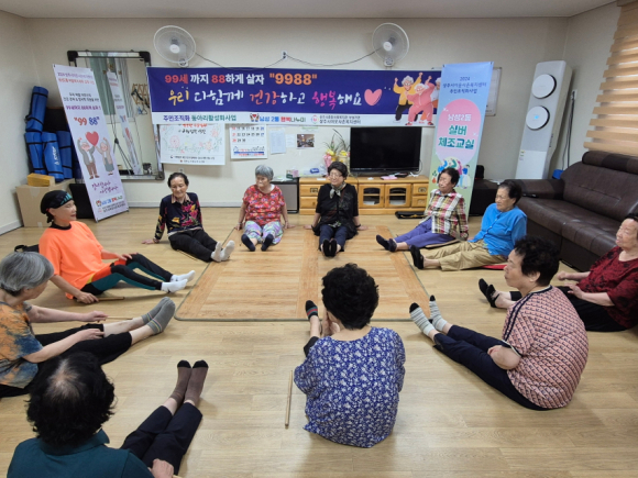 ‘99세까지 88하게 살자–9988’이란 주재로 한 이 사업은 70세 이상 어르신을 대상으로 웃음치료·실버체조교실, 외부 나들이 등 다양한 프로그램으로 이어졌다.