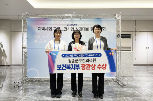 청송 보건의료원(원장 윤홍배)이 지난 26일 서울 피스앤파크 컨벤션 파크홀에서 열린 ‘2025년 지역사회 구강보건사업 성과대회’에서 보건복지부장관 표창을 수상했다.