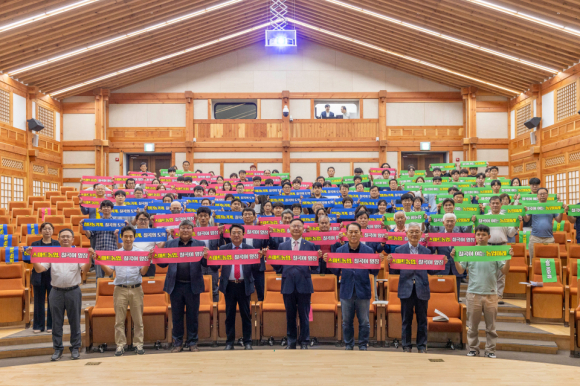 행사는 내빈 소개, 개회사, 축사에 이어 홍보영상 상영과 캐치프레이즈 퍼포먼스로 세미나의 주제를 시각적으로 전달했다. ‘칠곡이 여는 농업 미래’, ‘스마트농업, 칠곡이 앞장’ 등의 문구를 담은 퍼포먼스는 군민과 함께 농업 혁신 의지를 상징적으로 보여줬다.