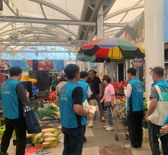 | 한국농어촌공사 경산청도지사가 추석을 앞두고 전통시장을 방문하며 ‘농지이양 은퇴직불사업’을 홍보했다.
