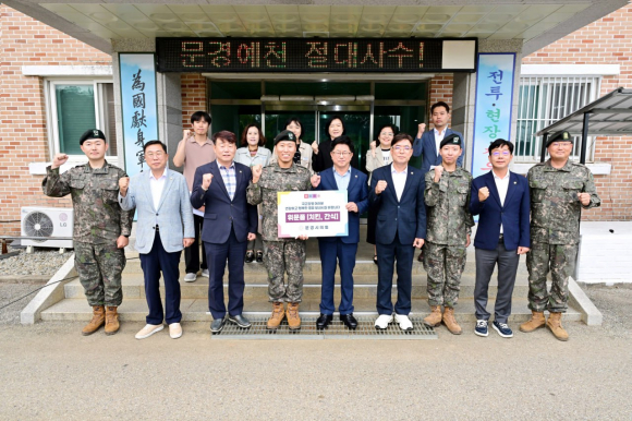 | 추석맞이 문경예천대대 위문방문 모습.<문경시의회 제공> | 문경 시의회가 지난 30일, 민족 고유의 명절 추석을 맞아 문경예천대대와 문경소방서를 방문해 군 장병들과 소방대원들의 노고를 격려하고 위문품을 전달했다.
