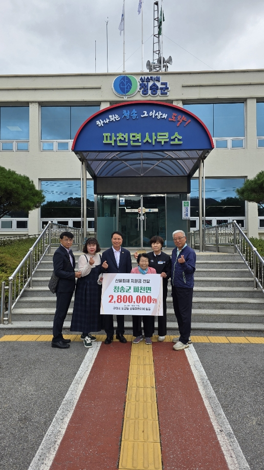 구미 도량동 단체장협의회(회장 안창섭)가 지난 10일 청송 파천면을 방문해 산불 피해 주민들을 돕기 위한 성금 280만 원을 전달했다.