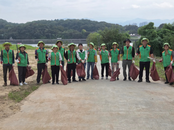 고령 다산 자율방재단이 다가 오는 철인 3종 경기 개최를 앞두고 단원 15명 및 하천 감시원 3명이 참여한 가운데 환경 정비 활동에 나섰다.