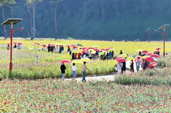 ‘산소카페 청송정원’은 지난 2021년 시범단지 개장을 거쳐 2022년 정식 개장된 이후, 매년 지역주민과 함께 백일홍 단지를 정성껏 가꿔왔다. 그 결과 매년 9월부터 10월까지 약 두 달간 10만 명이 넘는 관광객이 찾고 있으며, 특히 올해 추석 연휴 기간에는 5만 명 이상의 방문객이 몰려 문전성시(門前成市)를 이루었다.