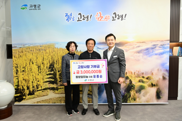 고령군 동방알미늄이 지난 13일 군청을 방문해 2년 연속 고향사랑기부금 300만 원을 기탁했다.
